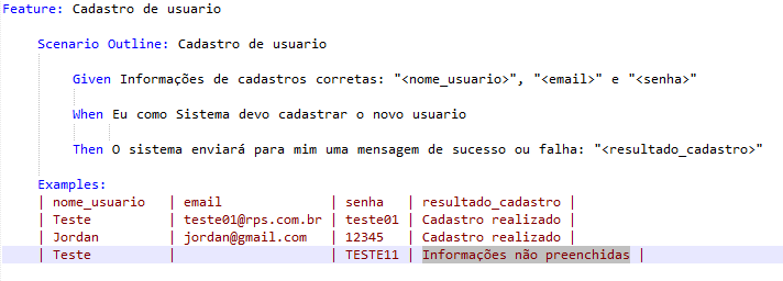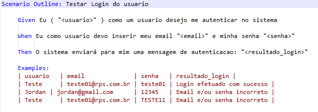 Neste primeiro caso, testamos o comportamento que o sistema deve ter quando algum usuário efetuar um login.